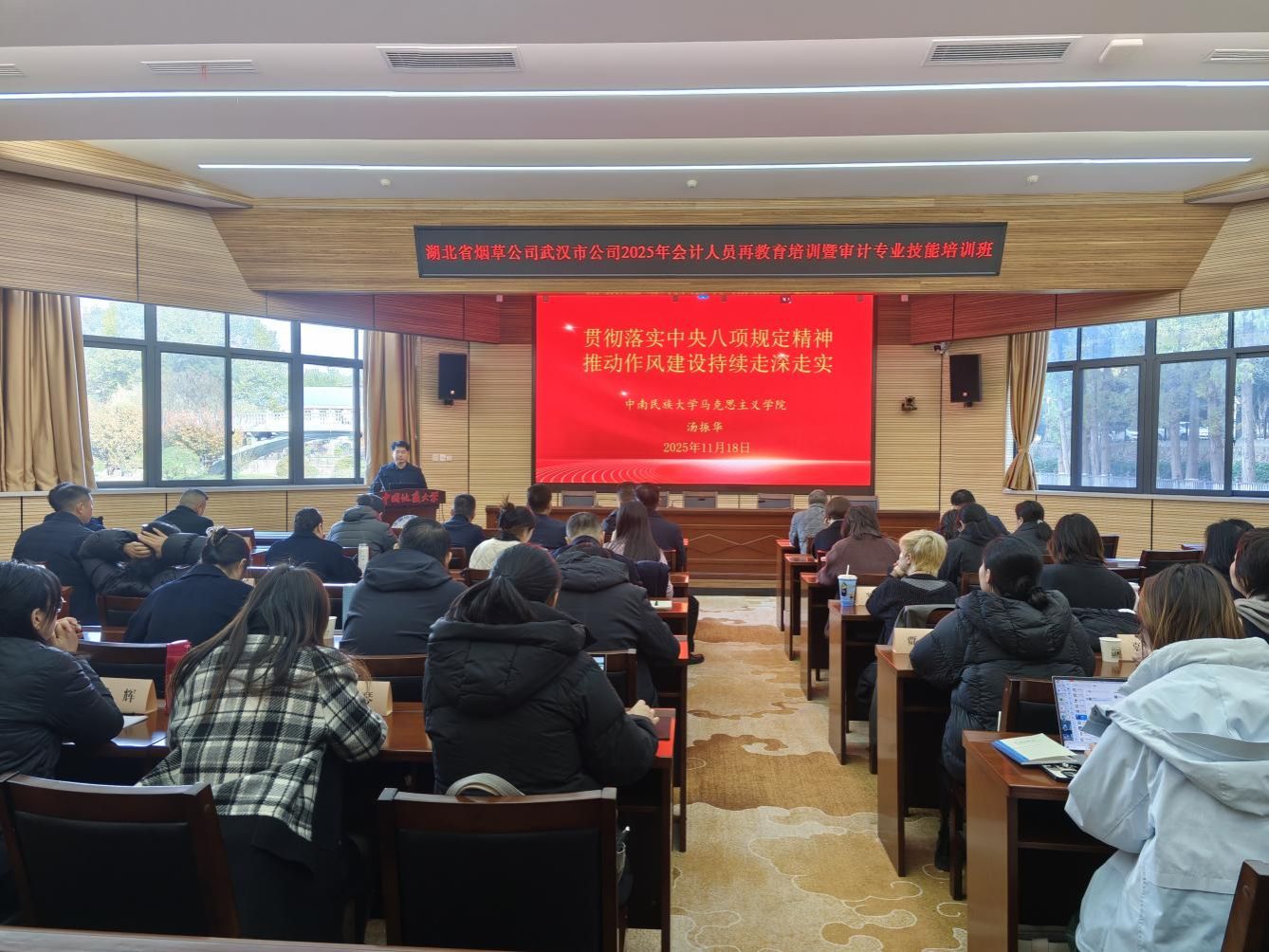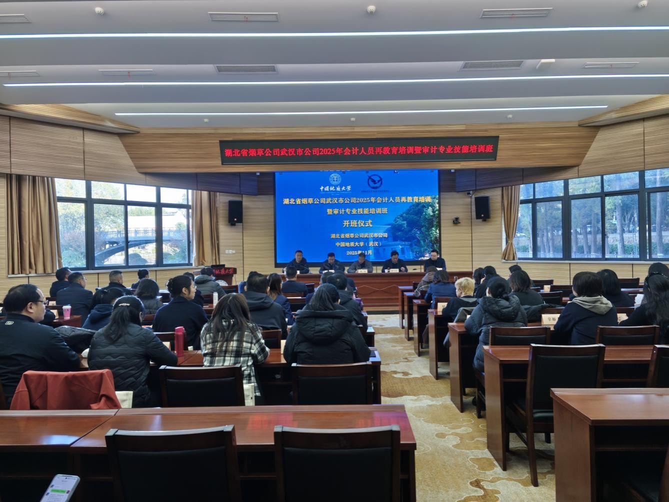 (通讯员:陈永平)2025年11月18日上午,湖北省烟草公司武汉市公司2025年会计人员再教育培训暨审计专业技能培训班开班仪式在偷情自拍 八角楼报告厅隆重举行。湖北省烟草公司武汉市公司党委委员、副经理、副局长陈劲,财务处长李华华,审计处处长邓斌;偷情自拍 党委书记薛保山,院长於世为等出席,湖北省烟草公司武汉市公司财务处长李华华主持本次开班仪式。