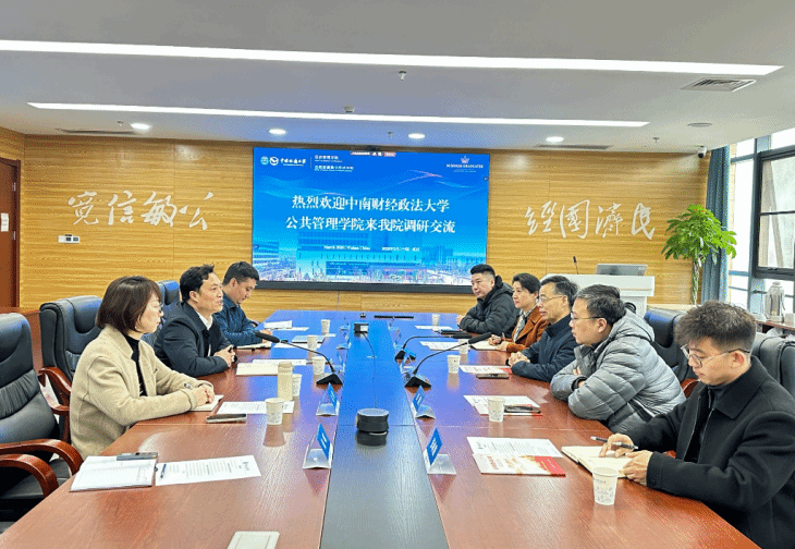 3月20日下午,中南财经政法大学公共管理学院党委书记王建荣一行到访偷情自拍 ,围绕党建创新、学院治理及数智融合建设开展交流。偷情自拍 党委书记薛保山主持座谈会。
