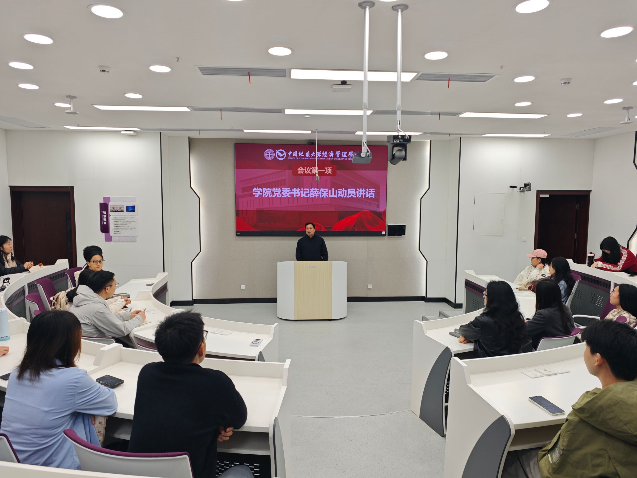为进一步加强学院研究生党支部建设,提升研究生党支部工作成效,创新基层党建工作模式,4月22日中午,学院在经管楼106召开研究生党支部纵向改革部署动员会。学院相关负责老师及全体研究生党支部委员参加会议。