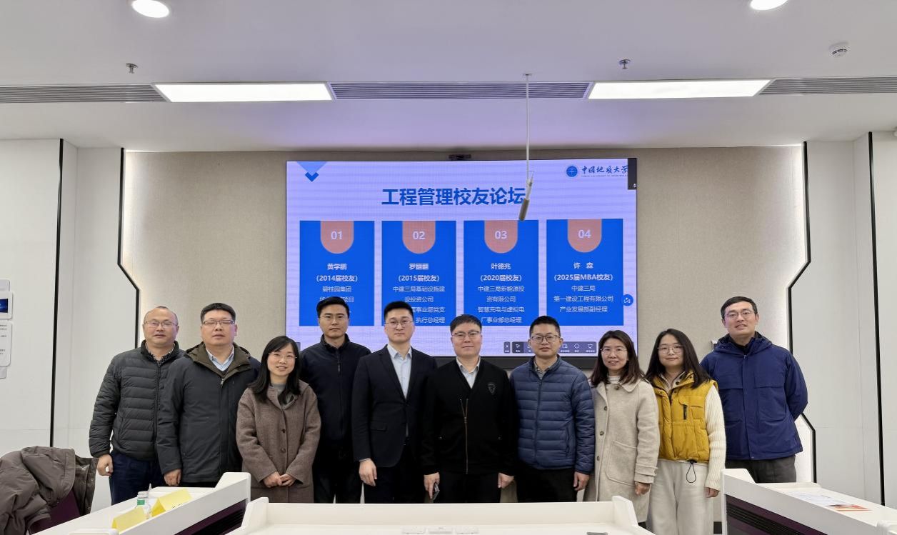 (通讯员:柯小玲 陈禹蒙 )2025年12月25日上午十点,工程管理专业在学院108智慧教室成功举办2025年工程管理校友论坛。论坛由该专业柯小玲老师牵头组织,以“行业前沿与职业成长”为主题,邀请碧桂园集团华中区域项目第一负责人黄学鹏、中建三局基础设施建设投资公司投资运营事业部党支部书记罗翻翻、中建三局新能源投资有限公司智慧充电与虚拟电厂事业部总经理叶德兆、中建三局第一建设工程有限公司产业发展部副经理许森四位优秀校友返校,分享行业趋势与成长经验,为在校生明晰发展方向、把握时代机遇提供指引。管理科学与工程系书记孙涵老师和工程管理专业的老师参加了论坛。